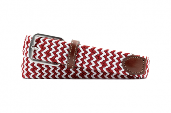 Martin Dingman Crimson/White Newport Woven Italian Rayon Elastic Belt